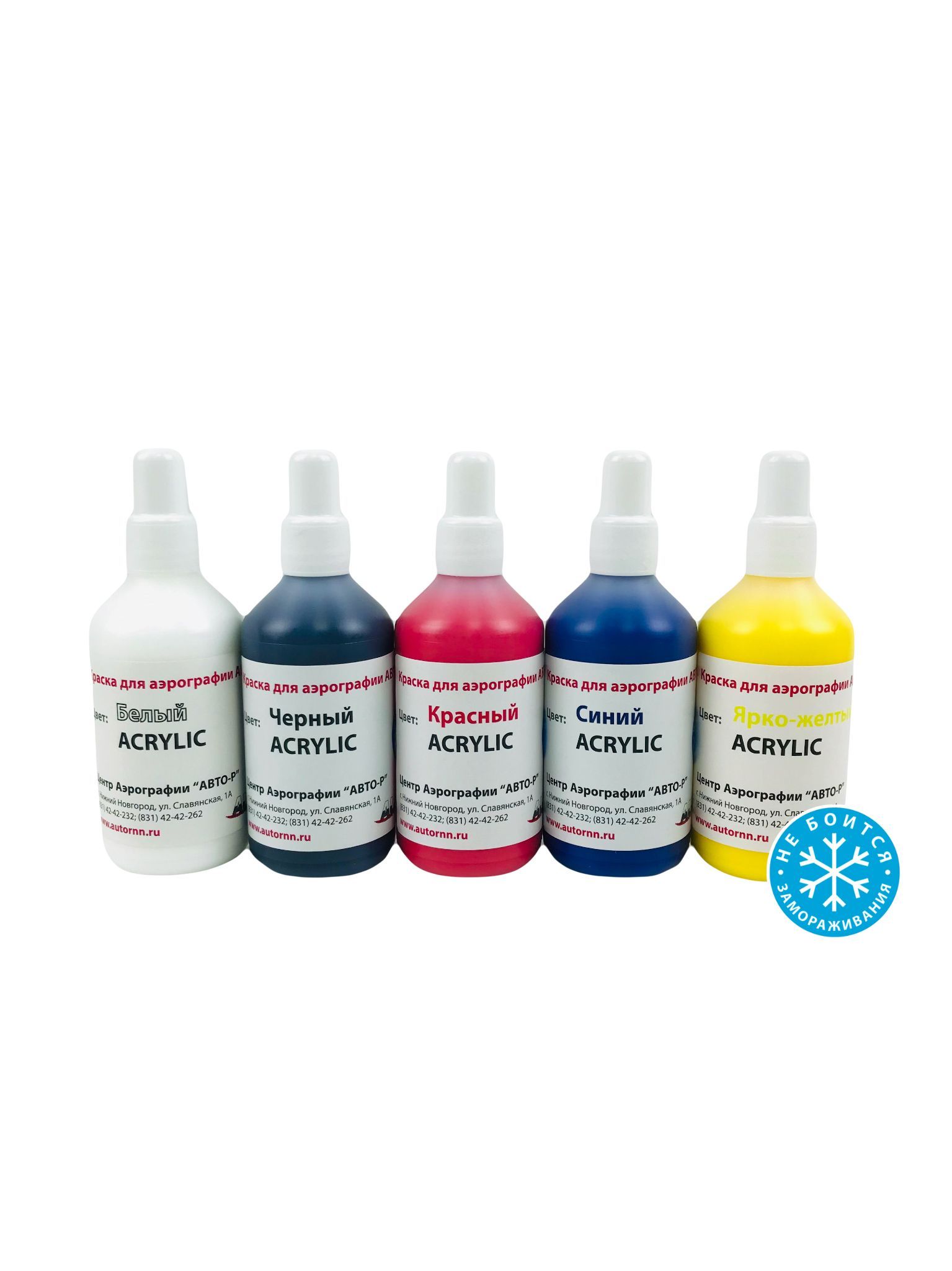 Комплект красок для аэрографии АВТО-Р, АКРИЛ, 5 базовых цветов по 100 мл