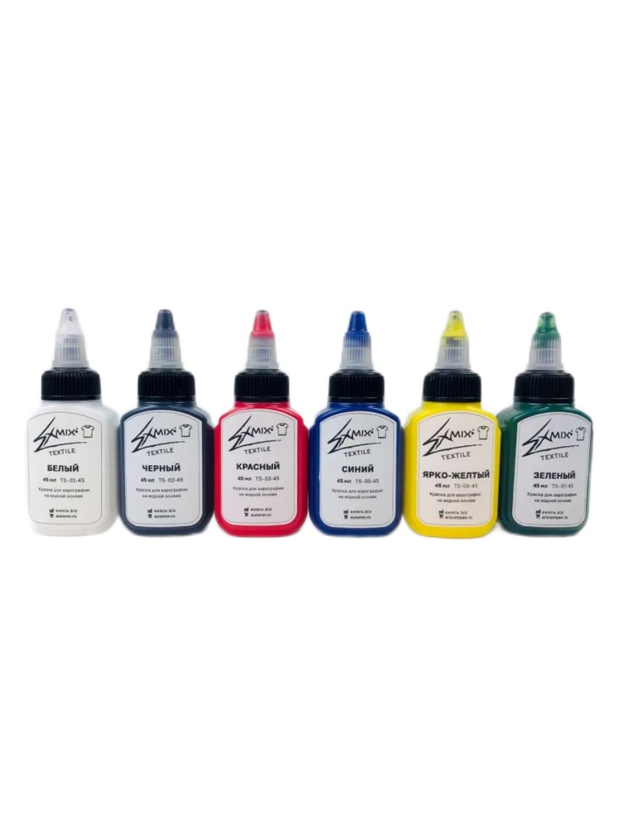 Комплект красок для аэрографии EXMIX TEXTILE, 6 цветов по 45 мл